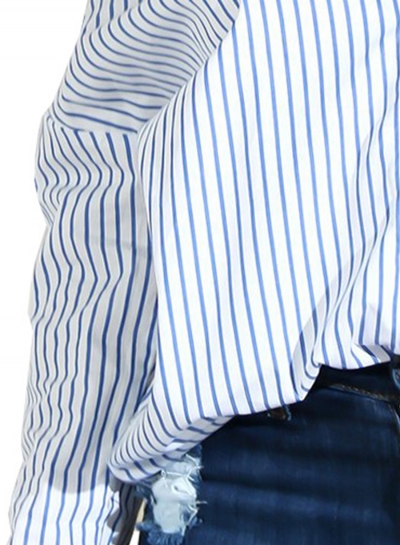 Sexy Loose Striped Strappy Off The Shoulder Long Sleeve Button Down Shirt