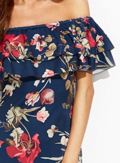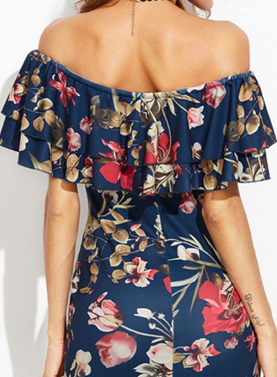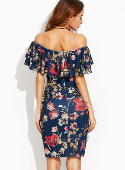 Slash Neck Off the Shoulder Floral Printed Bodycon Dress