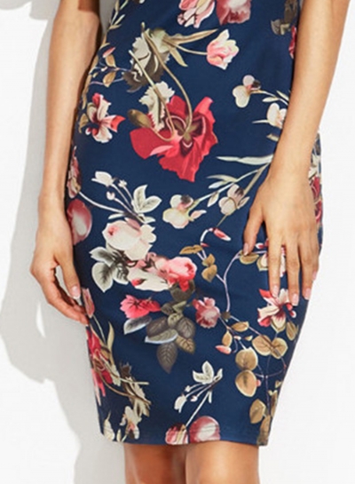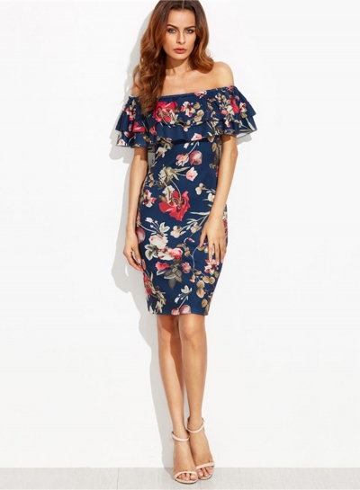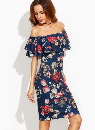 The dress is featuring slash neck, off the shoulder, floral printed and bodycon fit.