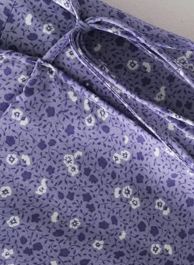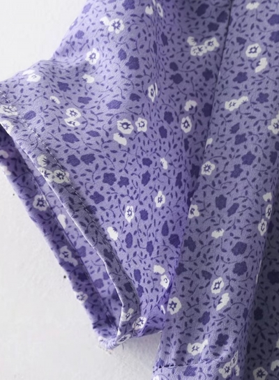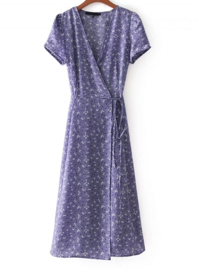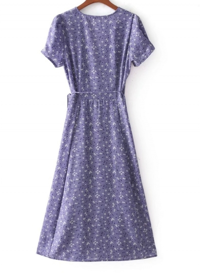 Fashion Boho Floral Printed Tie Waist Short Sleeve V Neck Women Dress