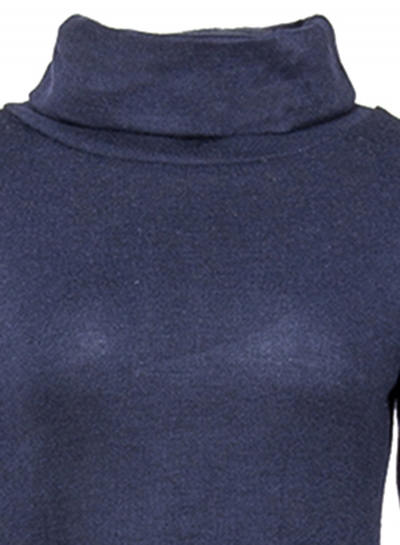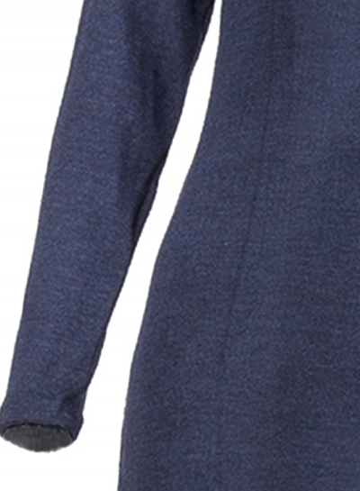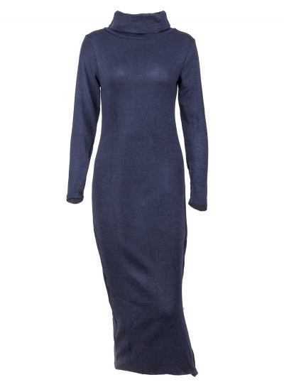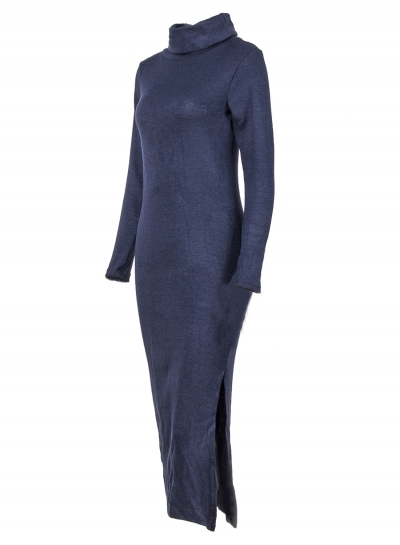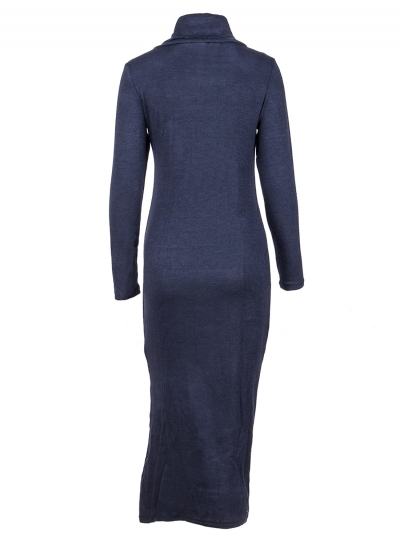 Navy High Neck Long Sleeve Slit Bodycon Dress