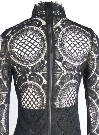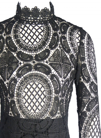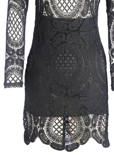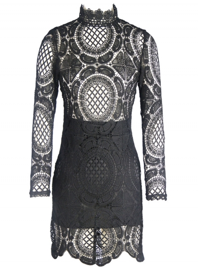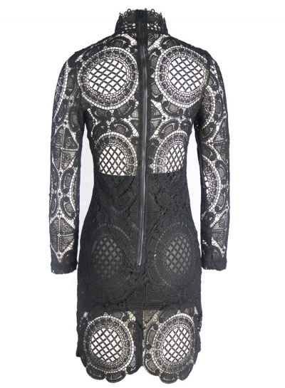 The lace dress is featuring is mock neck, long sleeve, hollow out, bodycon fit, back zip closure and mini length. The dress is suitful for party, club and so on.