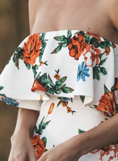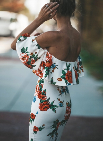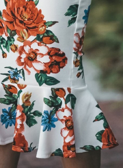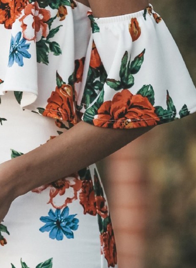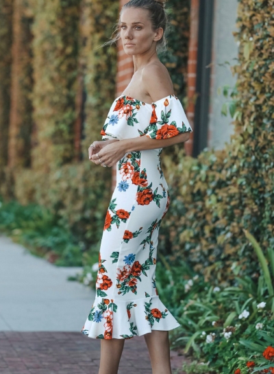 Fashion Floral Printed Short Sleeve Off The Shoulder Women Bodycon Dress