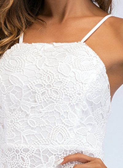 Fashion Solid Lace Spaghetti Strap Sleeveless Backess Women Bodycon Dress
