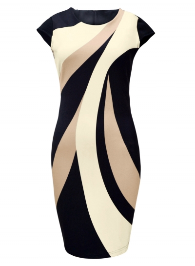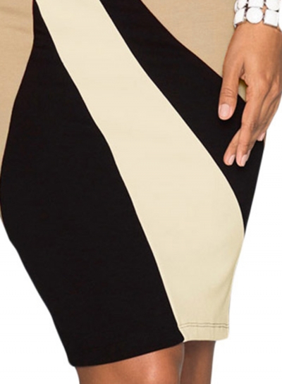 Taupe Accents Colorblock Geometric Pattern Tube Dress