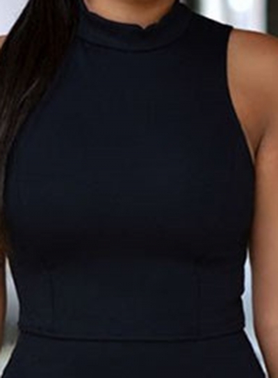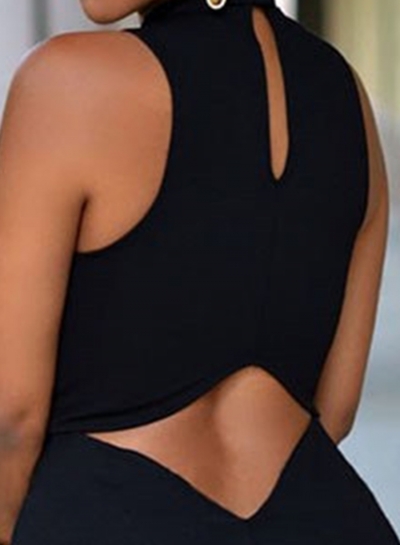 Sexy Solid Sleeveless High Neck Hollowed Out Bodycon Dress