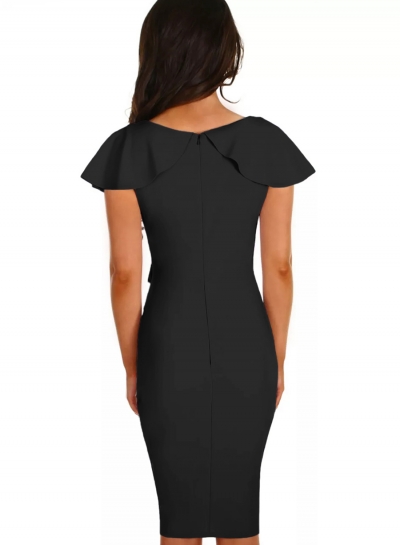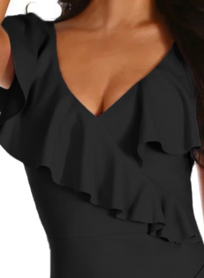 Sexy Gossip Black Frill V Neck Bodycon Sheath Dress For Women