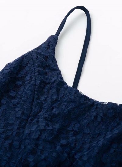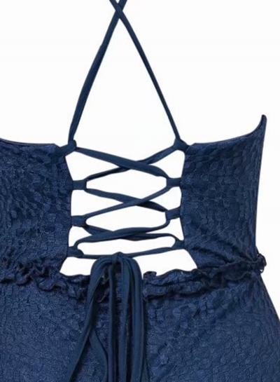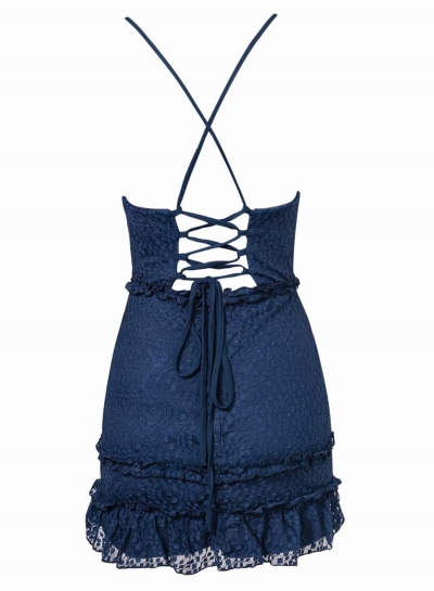Sexy Lace Spaghetti Strap Round Neck Backless Lace-Up Bodycon Dress