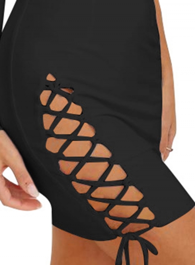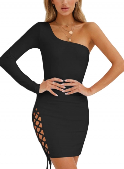 Sexy Irregular One Shoulder Lace-Up Hollow Out Night Club Bodycon Dress