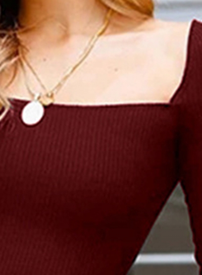 The bodycon dress features long sleeve and square neck.