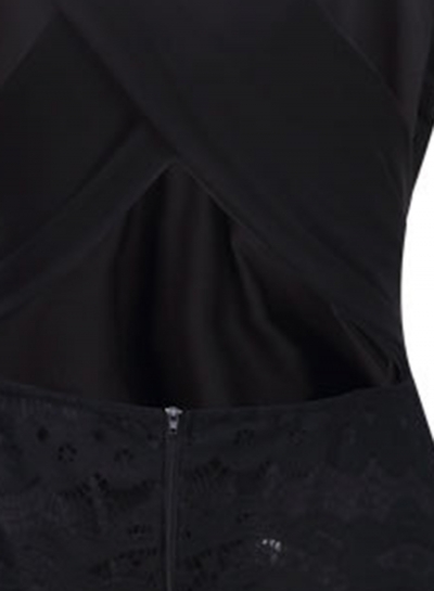 The bodycon dress features deep v neck and waist tie. The bodycon dress is lace splicing and skinny. Sexy v neck enhances a plumpy breast shape. Bodycon and flattering to create a curvaceous figure. The bodycon dress is suitable for night club and party.