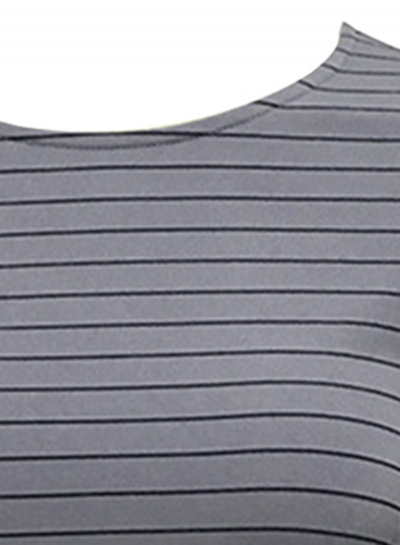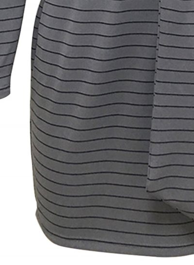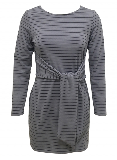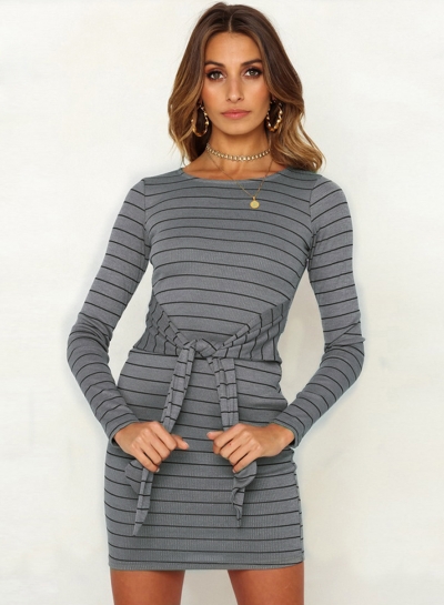 Casual Striped Round Neck Long Sleeve Waist Tie Pullover Bodycon Dress