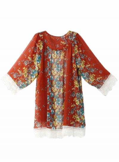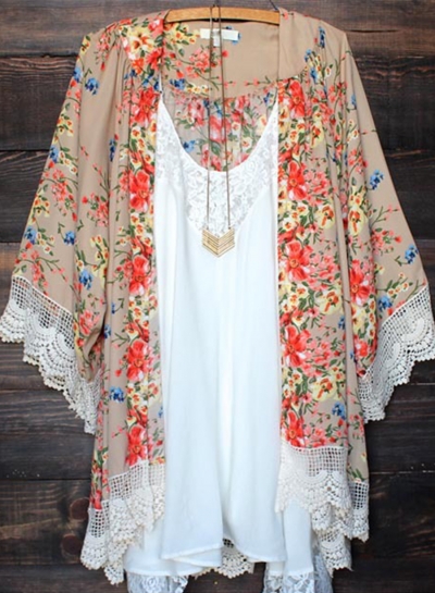 Women's Open front Floral Lace Kimono