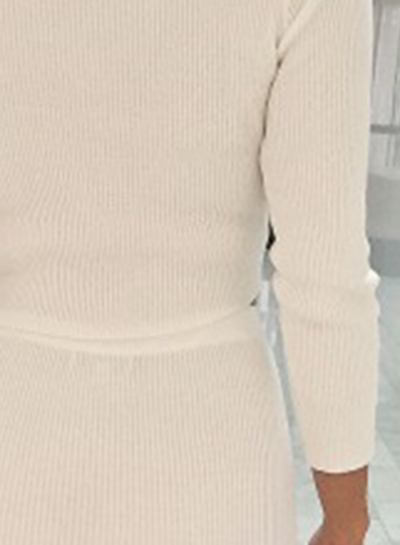 *The top is featuring round neck, pullover style, long sleeve, cropped length, slim fit and solid color. The skirt is featuring high wasit, solid color, slim fit and mid-calf length.