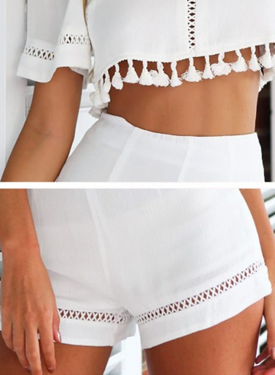 Fashion Crop Top Tassel Trim Shorts Matching Set