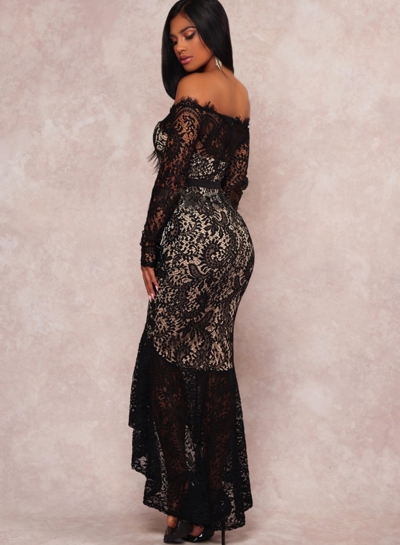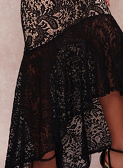 Fashion Sexy Irregular Lace Slash Neck High Waist Ruffle Hem Maxi Dress