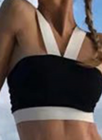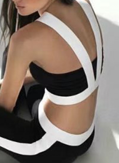The crop top is featuring spaghetti strap, pullover styling, sleeveless, color block and slim fit. The ankle leggings feature elastic waist and color block.